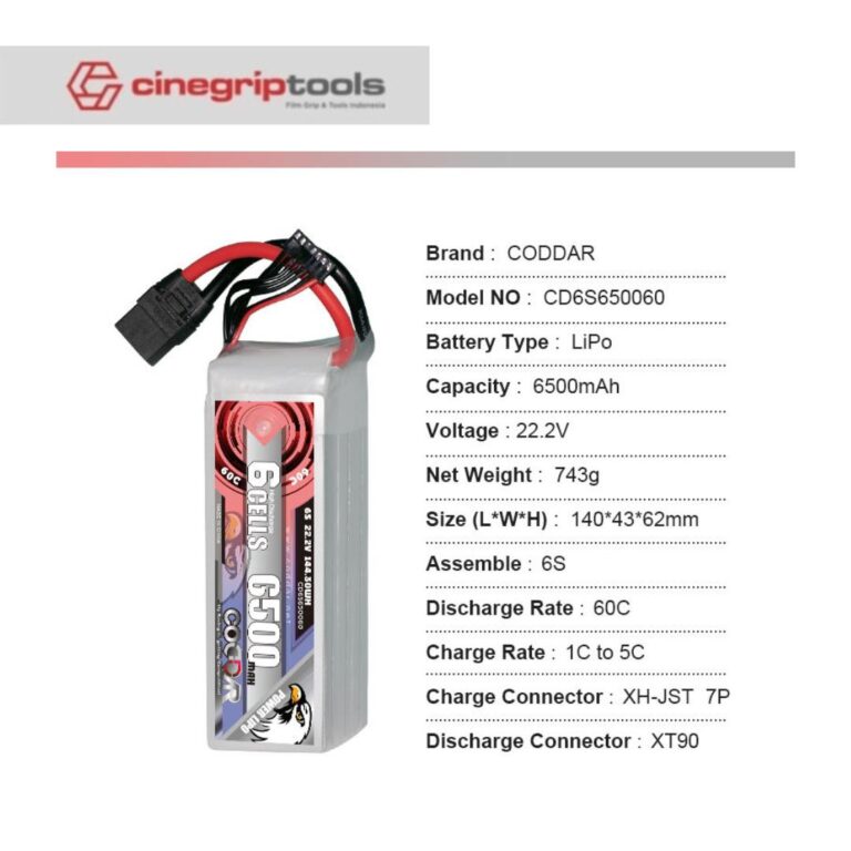 CODDAR 6S 6500MAH 22.2V 60C LiPo Battery XT90