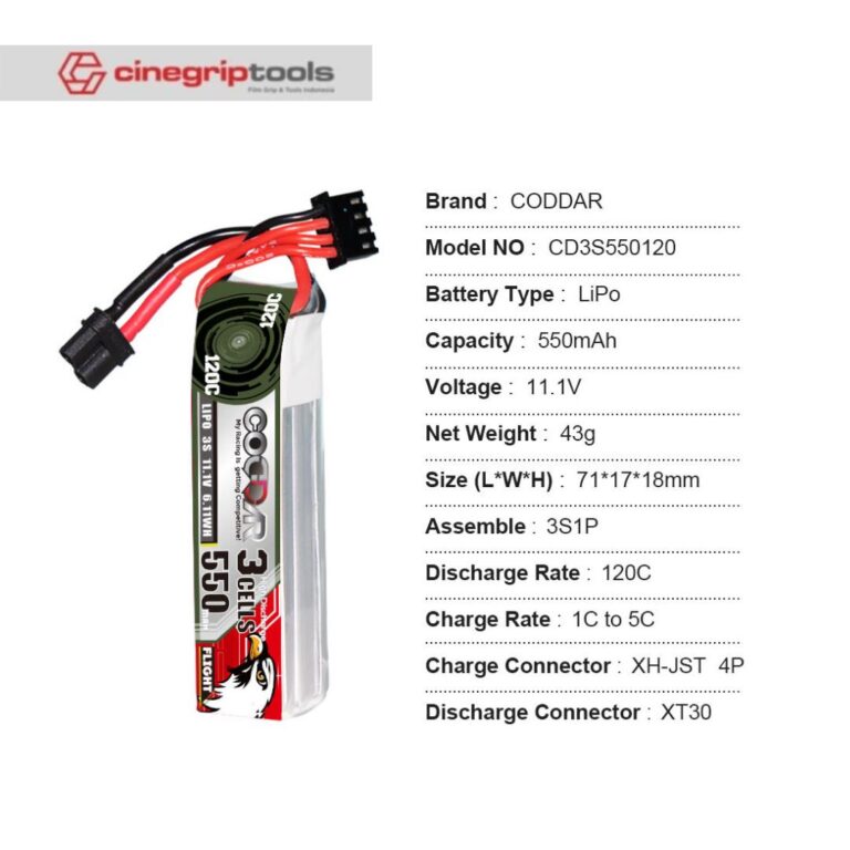 CODDAR 3S 550MAH 11.1V 120C LiPo Battery XT30 – CD3S550120